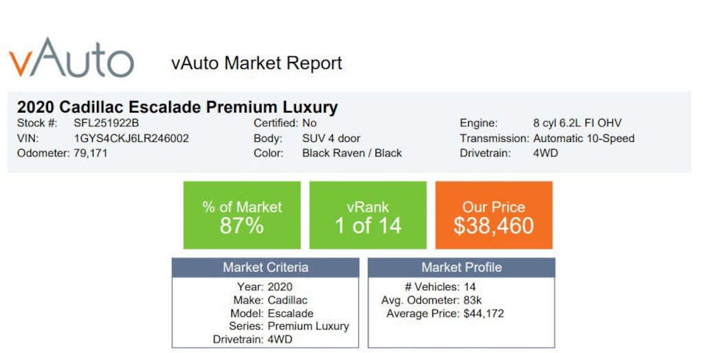 All-Weather Floor Liner Package (LPO), Driver Assist Package (Advanced Adaptive Cruise Control, Automatic Seat Belt Tightening, Electronic Powered Parking Brake, Enhanced Automatic Emergency Braking, and Reverse Automatic Braking), Driver Awareness Package (Forward Collision Alert, IntelliBeam Automatic High Beam On/Off, Lane Change Alert w/Side Blind Zone Alert, Lane Keep Assist w/Lane Departure Warning, Rear Cross Traffic Alert, and Safety Alert Seat), Preferred Equipment Group 1SC (Illuminating Door Handles, Power Configurable Second Row Bucket Seats, Power Tilt-Sliding Sunroof w/Express-Open/Close, Rear Camera Mirror, Rear Camera Mirror Washer, Rear Seat Entertainment System, Reconfigurable 4-Color Head-Up Display, Running Side Board Assist Steps, and VAC Power 17 Disc Brakes), Theft-Deterrent Package (Inclination Sensor, Theft-Deterrent Alarm System, and Vehicle Interior Movement Sensor), 4WD, Black Leather, 12-Way Power Front Passenger Seat Adjuster, 16 Speakers, 2-Presets Memory For Driver Seat Adjuster, 3.23 Axle Ratio, 3rd row seats: split-bench, 4-Wheel Disc Brakes, A/V remote, ABS brakes, Adaptive suspension, Adjustable pedals, Air Conditioning, Alloy wheels, AM/FM radio: SiriusXM, Apple CarPlay/Android Auto, Auto High-beam Headlights, Auto tilt-away steering wheel, Auto-dimming door mirrors, Auto-dimming Rear-View mirror, Auto-leveling suspension, Automatic temperature control, Black Front License Plate Bracket, Bodyside moldings, Bose Centerpoint 16 Speaker Surround Sound System, Brake assist, Bumpers: body-color, Compass, Delay-off headlights, Driver door bin, Driver vanity mirror, Dual front impact airbags, Dual front side impact airbags, Electronic Stability Control, Emergency communication system: OnStar and Cadillac connected services capable, Exterior Parking Camera Rear, Front anti-roll bar, Front Bucket Seats, Front Center Armrest w/Storage, Front dual zone A/C, Front reading lights, Front wheel independent suspension, Fully automatic headlights, Garage door transmitter, HD Radio, Headphones, Heads-Up Display, Heated & Cooled Driver & Front Passenger Seats, Heated door mirrors, Heated front seats, Heated rear seats, Heated steering wheel, Illuminated entry, Leather Seating Surfaces, Leather Shift Knob, Leather steering wheel, Low tire pressure warning, Magnetic Ride Control Suspension, Memory seat, Navigation System, Occupant sensing airbag, Outside temperature display, Overhead airbag, Overhead console, Panic alarm, Passenger door bin, Passenger vanity mirror, Pedal memory, Power door mirrors, Power driver seat, Power Liftgate, Power moonroof, Power passenger seat, Power steering, Power windows, Power-Retractable Assist Steps, Radio data system, Radio: AM/FM Cadillac User Experience w/Nav, Rain sensing wipers, Rear air conditioning, Rear anti-roll bar, Rear audio controls, Rear reading lights, Rear window defroster, Rear window wiper, Remote keyless entry, Security system, SiriusXM NavTraffic, SiriusXM Radio, Speed control, Split folding rear seat, Spoiler, Steering wheel memory, Steering wheel mounted audio controls, Tachometer, Telescoping steering wheel, Tilt steering wheel, Traction control, Trip computer, Turn signal indicator mirrors, Variably intermittent wipers, Ventilated front seats, Wheels: 22 6-Spoke High-Gloss Black Alloy (LPO), Wheels: 22 Interim (LPO), and Wheels: 22 x 9 7-Spoke Alloy w/Chrome Inserts. 4WD, Black Leather.
