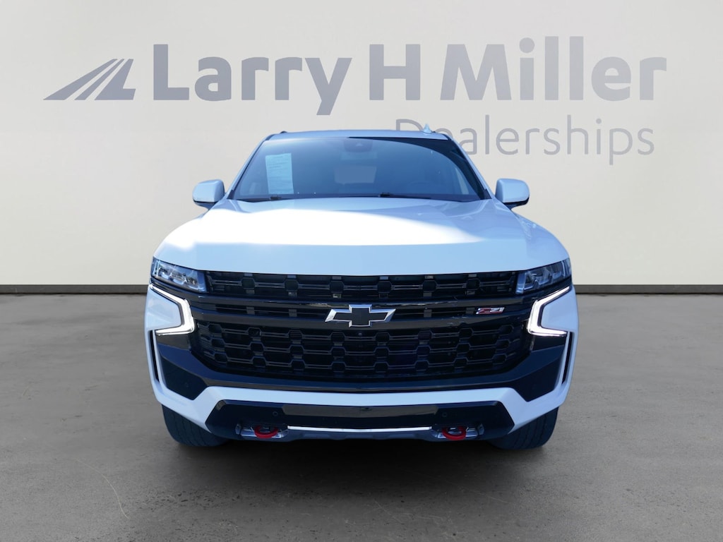 Advanced Trailering Package (Hitch Guidance w/Hitch View, Integrated Trailer Brake Controller, and Smart Trailer Integration Indicator), Driver Alert Package (Lane Change Alert w/Side Blind Zone Alert and Rear Cross Traffic Alert), License Plate Front Mounting Package, Luxury Package (2nd Row Pwr Release 60/40 Split-Folding Bench Seat, 3rd Row 60/40 Power-Folding Split-Bench Seat, HD Surround Vision, Heated 2nd Row Outboard Seats, Heated Steering Wheel, Memory Settings, Outside Heated Power-Adjustable Mirrors, Power Tilt & Telescopic Steering Column, and Rear Pedestrian Alert), Max Trailering Package (Extra Capacity Cooling System), Preferred Equipment Group 2Z7 (1st & 2nd Row Color-Keyed Carpeted Floor Mats, 2-Speed Active Electronic AutoTrac Transfer Case, Auto-Dimming Inside Rear-View Mirror, Black Tubular Assist Steps, Bose 9-Speaker Stereo Audio System Feature, Bright Front & Rear Door Sill Plates, Color-Keyed Carpeting Floor Covering, Driver & Front Outboard Passenger Airbags, Enhanced Driver Information Center, Floor Console w/Storage Area, Front High-Approach Angle Fascia, Hands-Free Rear Power Programmable Liftgate, Hill Descent Control, Infotainment Display, LED Daytime Running Lamps, Memory Settings for Driver, Red Horizontal-Mounted Recovery Hooks, Remote Start, SiriusXM Radio w/360L, Universal Home Remote, Wireless Charging, and Wrapped Steering Wheel), 4WD, Black Leather, 10-Way Power Driver & Passenger Seat Adjusters, 1st, 2nd & 3rd Rows All-Weather Floor Liners (LPO), 3.23 Rear Axle Ratio, 3rd row seats: split-bench, 4-Wheel Disc Brakes, 9 Speakers, ABS brakes, Air Conditioning, Alloy wheels, AM/FM radio: SiriusXM with 360L, Apple CarPlay/Android Auto, Auto High-beam Headlights, Auto-dimming Rear-View mirror, Automatic temperature control, Brake assist, Bumpers: body-color, Compass, Delay-off headlights, Driver door bin, Driver vanity mirror, Dual front impact airbags, Dual front side impact airbags, Electronic Stability Control, Emergency communication system: OnStar and Chevrolet connected services capable, Four wheel independent suspension, Front anti-roll bar, Front Bucket Seats, Front Center Armrest, Front dual zone A/C, Front High-Back Reclining Bucket Seats, Front reading lights, Fully automatic headlights, Garage door transmitter, Heated door mirrors, Heated Driver & Front Passenger Seats, Heated front seats, Illuminated entry, Leather-Appointed Seat Trim, Low tire pressure warning, Memory seat, Navigation System, Occupant sensing airbag, Outside temperature display, Overhead airbag, Overhead console, Panic alarm, Passenger door bin, Passenger vanity mirror, Power door mirrors, Power driver seat, Power Liftgate, Power passenger seat, Power Release 2nd Row Bucket Seats, Power steering, Power windows, Premium audio system: Chevrolet Infotainment 3 Premium, Premium Smooth Ride Suspension, Radio: Chevrolet Infotainment 3 Premium System, Rain sensing wipers, Rear air conditioning, Rear anti-roll bar, Rear reading lights, Rear seat center armrest, Rear window defroster, Rear window wiper, Remote keyless entry, Roof rack: rails only, Security system, Speed control, Speed-sensing steering, Split folding rear seat, Spoiler, Steering wheel mounted audio controls, Tachometer, Telescoping steering wheel, Tilt steering wheel, Traction control, Trip computer, Variably intermittent wipers, Voltmeter, and Wheels: 20 x 9 Machined Aluminum. 4WD, Black Leather.