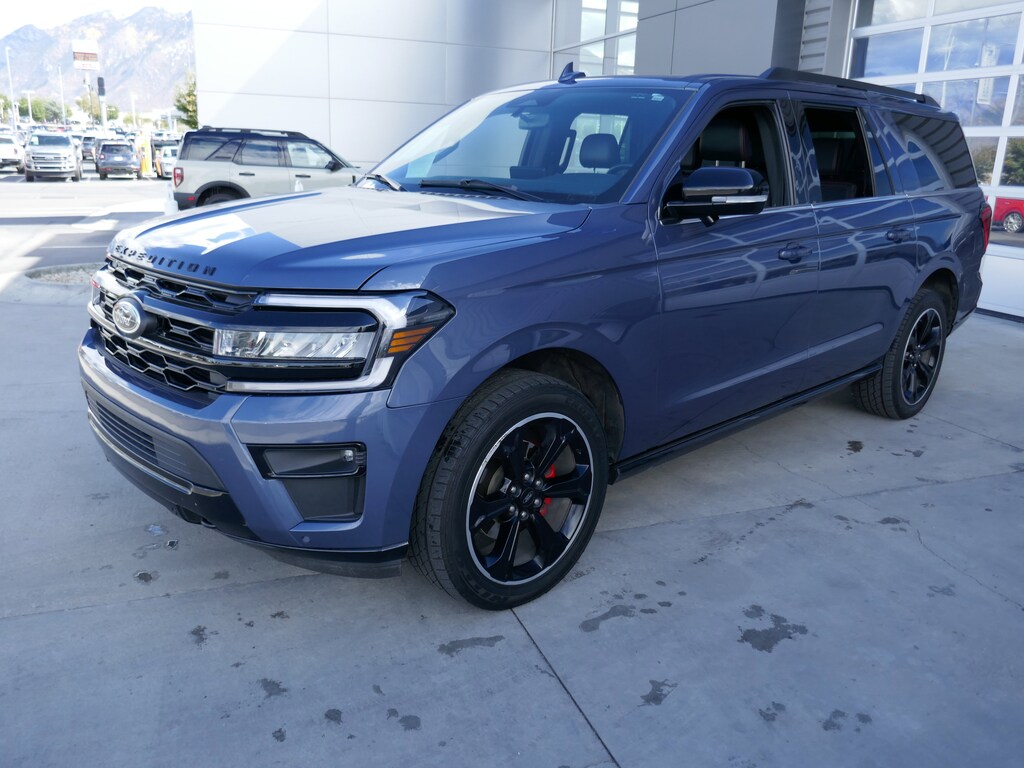 Equipment Group 304A Stealth Performance Package (1st & 2nd Row Floor Mats w/Logo, Heated/Ventilated Lthr Front Captain's Chairs (A), Radio: B&O Unleashed Sound System by Bang & Olufsen, SiriusXM w/360L, SYNC 4 w/Enhanced Voice Recognition, and Wheels: 22 Premium Black-Painted Aluminum), Heavy-Duty Trailer Tow Package (360-Degree Camera w/Trailer Reverse Guidance, Integrated Trailer Brake Controller, and Pro Trailer Backup Assist), Stealth Performance Edition Package (Black Headlamp and Fog Lamp Bezels, Black Limited Tailgate Badge, Black Roof Rack Side Rails, Body Color Door Handles, Dual Exhaust System, Ebony Black Power Deployable Running Boards, Ebony Black Tailgate Applique, Ebony Black Twin Spar Grille, Enhanced Active Noise Control, Expedition Lettering on Hood, LED Taillamp w/Black Bezels, Power-Folding Sideview Mirrors w/Autofold, Red Brake Calipers, Sport Center Console, Sport-Tuned Suspension, and Stealth Signature Lighting Removal), 12 Speakers, 15.5 LCD Capacitive Touchscreen, 360-Degree Camera w/Split View, 3rd row seats: split-bench, 4-Wheel Disc Brakes, ABS brakes, Active Park Assist 2.0, Adjustable pedals, Air Conditioning, Alloy wheels, AM/FM radio: SiriusXM with 360L, Auto High-beam Headlights, Auto-dimming door mirrors, Auto-dimming Rear-View mirror, Automatic temperature control, Brake assist, Bumpers: body-color, Compass, Delay-off headlights, Driver door bin, Driver vanity mirror, Dual front impact airbags, Dual front side impact airbags, Electronic Stability Control, Emergency communication system: SYNC 4 911 Assist, Exterior Parking Camera Rear, Four wheel independent suspension, Front anti-roll bar, Front Bucket Seats, Front Center Armrest, Front dual zone A/C, Front fog lights, Front reading lights, Fully automatic headlights, Garage door transmitter, Hands-Free Foot-Activated Feature Removal, Heated & Ventilated Leather Front Captain's Chairs, Heated door mirrors, Heated front seats, Heated rear seats, Heated steering wheel, Illuminated entry, Instrument Panel Cluster, Leather steering wheel, Low tire pressure warning, Memory seat, Navigation system: Connected Navigation, Occupant sensing airbag, Outside temperature display, Overhead airbag, Overhead console, Panic alarm, Passenger door bin, Passenger vanity mirror, Pedal memory, Power door mirrors, Power driver seat, Power Liftgate, Power moonroof, Power passenger seat, Power steering, Power windows, Radio data system, Radio: B&O Sound System by Bang & Olufsen, Rain sensing wipers, Rear air conditioning, Rear anti-roll bar, Rear reading lights, Rear window defroster, Rear window wiper, Reclining 3rd row seat, Remote keyless entry, Reverse Brake Assist, Second Row Power Windows Removal, Security system, Speed control, Speed-sensing steering, Speed-Sensitive Wipers, Split folding rear seat, Spoiler, Steering wheel memory, Steering wheel mounted audio controls, SYNC 4A w/Enhanced Voice Recognition, Tachometer, Telescoping steering wheel, Tilt steering wheel, Traction control, Trip computer, Turn signal indicator mirrors, Variably intermittent wipers, Ventilated front seats, Voltmeter, and Wheels: 20 Bright Machined Aluminum.