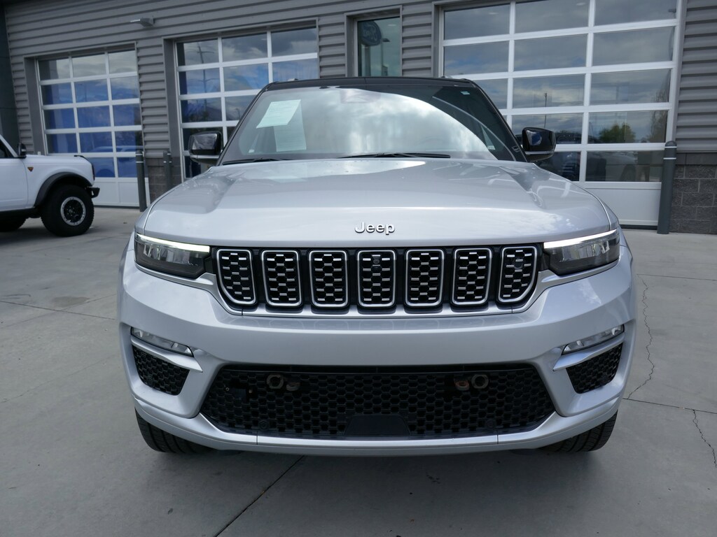 ADV Protech Group IV (Heads-Up Display, Night Vision w/Pedestrian-Animal Detection, and Rearview Autodim Digital Display Mirror), Luxury Tech Group V (2nd-Row Manual Window Shades and Wireless Charging Pad), Quick Order Package 25U Summit Reserve (19 Speakers High Performance Audio, 950 Watt Amplifier, Active Noise Control System, Deluxe Headliner, Front Passenger Interactive Display, Palermo Leather Door Trim, Palermo Leather Seats, Summit Reserve, Summit Reserve Badge, Ventilated Rear Seats, and Wheels: 21 x 9 Machined Face/Painted Aluminum), 4WD, 10 Speakers, 3.45 Rear Axle Ratio, 4-Wheel Disc Brakes, ABS brakes, Adaptive suspension, Air Conditioning, Alloy wheels, AM/FM radio: SiriusXM with 360L, Anti-whiplash front head restraints, Audio memory, Auto High-beam Headlights, Auto-dimming door mirrors, Auto-dimming Rear-View mirror, Auto-leveling suspension, Automatic temperature control, Brake assist, Bumpers: body-color, Compass, Conventional Differential Rear Axle, Delay-off headlights, Driver door bin, Driver vanity mirror, Dual front impact airbags, Dual front side impact airbags, Electronic Limited Slip Differential Delete, Electronic Stability Control, Emergency communication system, Four wheel independent suspension, Front anti-roll bar, Front Bucket Seats, Front Center Armrest w/Storage, Front dual zone A/C, Front fog lights, Front reading lights, Fully automatic headlights, Garage door transmitter, Genuine wood dashboard insert, Genuine wood door panel insert, Heated door mirrors, Heated front seats, Heated rear seats, Heated steering wheel, Illuminated entry, Knee airbag, Leather steering wheel, Low tire pressure warning, Memory seat, Nappa Leather Seats, Navigation System, Normal Duty Suspension, Occupant sensing airbag, Outside temperature display, Overhead airbag, Overhead console, Panic alarm, Passenger door bin, Passenger vanity mirror, Power door mirrors, Power driver seat, Power Liftgate, Power moonroof, Power passenger seat, Power steering, Power windows, Radio data system, Radio: Uconnect 5 Nav w/10.1 Display, Rain sensing wipers, Rear air conditioning, Rear anti-roll bar, Rear dual zone A/C, Rear reading lights, Rear seat center armrest, Rear window defroster, Rear window wiper, Remote keyless entry, Roof rack: rails only, Security system, Speed control, Speed-Sensitive Wipers, Split folding rear seat, Spoiler, Steering wheel memory, Steering wheel mounted audio controls, Tachometer, Telescoping steering wheel, Tilt steering wheel, Traction control, Trip computer, Turn signal indicator mirrors, Variably intermittent wipers, Ventilated front seats, Voltmeter, and Wheels: 20 x 8.5 Fully Painted Aluminum Silver. 4WD.