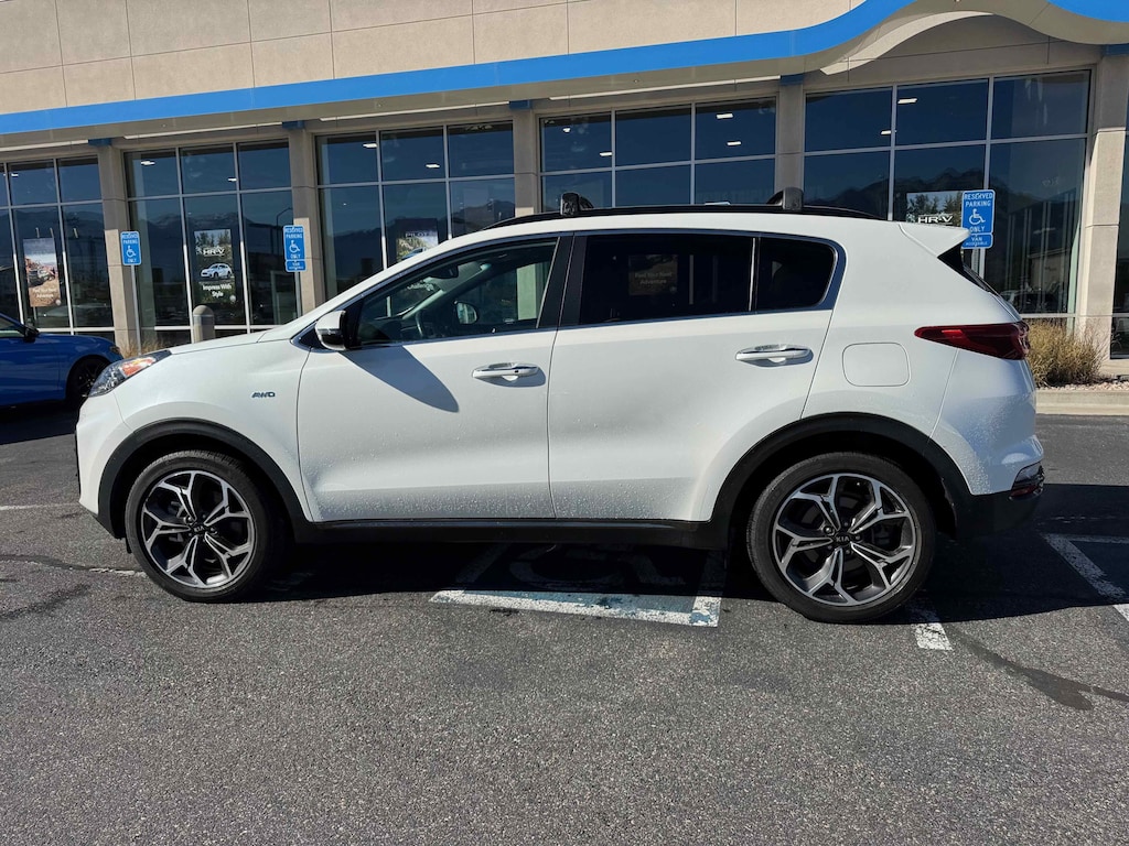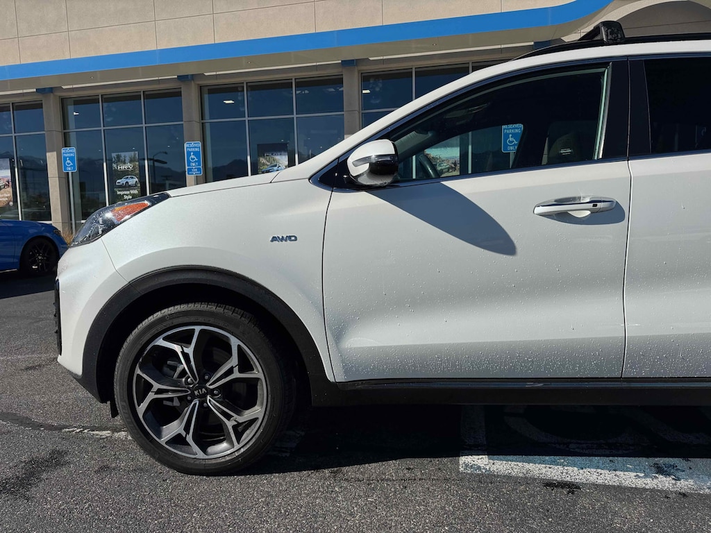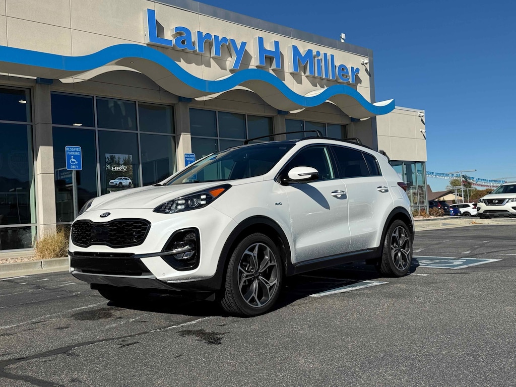 Larry H. Miller Honda Murray offers this 2020 Snow White Pearl Kia Sportage SX AWD It is loaded with many standard and optional features including: SX Beige Interior Color Package, AWD, 19 Alloy Wheels, 4-Wheel Disc Brakes, 8 Speakers, ABS brakes, Air Conditioning, Alloy wheels, AM/FM radio: SiriusXM, Apple CarPlay & Android Auto, Auto High-beam Headlights, Auto-dimming Rear-View mirror, Automatic temperature control, Axle Ratio: TBD, Brake assist, Bumpers: body-color, Carpet Floor Mats, Compass, Delay-off headlights, Driver door bin, Driver vanity mirror, Dual front impact airbags, Dual front side impact airbags, Electronic Stability Control, Emergency communication system: UVO link, Exterior Parking Camera Rear, Four wheel independent suspension, Front anti-roll bar, Front Bucket Seats, Front Center Armrest, Front dual zone A/C, Front fog lights, Front reading lights, Fully automatic headlights, Garage door transmitter: HomeLink, Heated & Ventilated Front Bucket Seats, Heated door mirrors, Heated front seats, Heated steering wheel, Illuminated entry, Leather Seat Trim, Leather Shift Knob, Leather steering wheel, Low tire pressure warning, Navigation System, Occupant sensing airbag, Outside temperature display, Overhead airbag, Overhead console, Panic alarm, Passenger door bin, Passenger vanity mirror, Power door mirrors, Power driver seat, Power Liftgate, Power moonroof, Power passenger seat, Power steering, Power windows, Radio: AM/FM/MP3 Premium Audio System, Rear anti-roll bar, Rear seat center armrest, Rear window defroster, Rear window wiper, Remote keyless entry, Roof rack: rails only, Security system, Speed control, Speed-sensing steering, Split folding rear seat, Spoiler, Sport steering wheel, Steering wheel mounted audio controls, Tachometer, Telescoping steering wheel, Tilt steering wheel, Traction control, Trip computer, Turn signal indicator mirrors, Variably intermittent wipers, and Ventilated front seats.