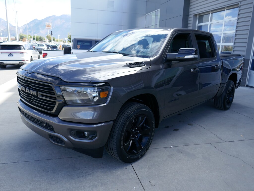 Laramie Level 1 Equipment Group (2nd Row In Floor Storage Bins), Quick Order Package 28H Laramie, #1 Seat Foam Cushion, 10 Speakers, 3 Rear Seat Head Restraints, 33 Gallon Fuel Tank, 4 Way Front Headrests, 4-Wheel Disc Brakes, 48V Belt Starter Generator, 8.4 Touchscreen Display, ABS brakes, Adjustable pedals, Air Conditioning, Alloy wheels, AM/FM radio: SiriusXM, Apple CarPlay, Apple CarPlay/Android Auto, Audio memory, Auto-dimming door mirrors, Auto-dimming Rear-View mirror, Automatic temperature control, Brake assist, Bumpers: chrome, Compass, Delay-off headlights, Driver door bin, Driver Seat Memory, Driver vanity mirror, Dual front impact airbags, Dual front side impact airbags, Electronic Stability Control, Front & Rear Rubber Floor Mats, Front anti-roll bar, Front Center Armrest w/Storage, Front dual zone A/C, Front fog lights, Front reading lights, Front Seat Back Map Pockets, Front wheel independent suspension, Fully automatic headlights, Garage door transmitter, Google Android Auto, GPS Antenna Input, Heated door mirrors, Heated Front Seats, Heated front seats, Heated Steering Wheel, Heated steering wheel, Illuminated entry, Integrated Center Stack Radio, Leather steering wheel, Leather Trim 40/20/40 Bench Seat, Low tire pressure warning, Manufacturer's Statement of Origin, Memory seat, Occupant sensing airbag, Outside temperature display, Overhead airbag, Overhead console, Panic alarm, ParkSense Front/Rear Park Assist w/Stop (DISC), ParkView Rear Back-Up Camera, Passenger door bin, Passenger vanity mirror, Pedal memory, Power 4-Way Driver Lumbar Adjust, Power 4-Way Passenger Lumbar Adjust, Power 8-Way Driver & Passenger Seats, Power door mirrors, Power driver seat, Power passenger seat, Power steering, Power windows, Radio data system, Radio: Uconnect 4 w/8.4 Display, Rear 60/40 Folding Seat, Rear anti-roll bar, Rear seat center armrest, Rear step bumper, Rear window defroster, Remote keyless entry, Security system, SiriusXM Satellite Radio, Speed control, Split folding rear seat, Steering wheel mounted audio controls, Tachometer, Telescoping steering wheel, Tilt steering wheel, Traction control, Trailer Brake Control, Trip computer, Turn signal indicator mirrors, Variably intermittent wipers, Ventilated Front Seats, Ventilated front seats, Voltmeter, and Wheels: 18 x 8 Aluminum Base Painted.