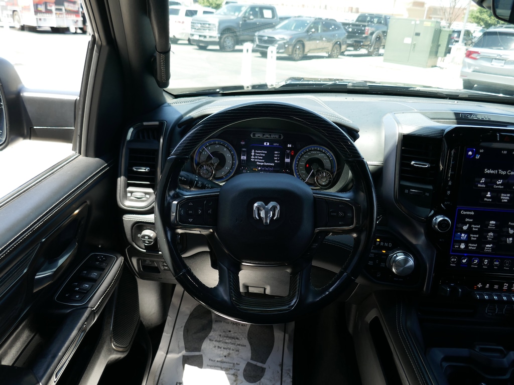 Quick Order Package 27M Limited, 1-Yr SiriusXM Guardian Trial, 10 Speakers, 3.21 Rear Axle Ratio, 3.92 Rear Axle Ratio, 33 Gallon Fuel Tank, 4-Wheel Disc Brakes, 48V Belt Starter Generator, 4G LTE Wi-Fi Hot Spot, ABS brakes, Adjustable pedals, Air Conditioning, Alloy wheels, AM/FM radio: SiriusXM with 360L, Apple CarPlay, Apple CarPlay/Android Auto, Audio memory, Auto High-beam Headlights, Auto-dimming door mirrors, Auto-dimming Rear-View mirror, Auto-leveling suspension, Automatic temperature control, Bodyside moldings, Brake assist, Bumpers: chrome, Chrome Exterior Mirrors, Compass, Delay-off headlights, Disassociated Touchscreen Display, Driver door bin, Driver vanity mirror, Dual front impact airbags, Dual front side impact airbags, E-Locker Rear Axle, Electronic Stability Control, Emergency communication system: SiriusXM Guardian, For More Info, Call 800-643-2112, Front anti-roll bar, Front Bucket Seats, Front Center Armrest w/Storage, Front dual zone A/C, Front fog lights, Front License Plate Bracket, Front reading lights, Front wheel independent suspension, Fully automatic headlights, Garage door transmitter, Genuine wood console insert, Genuine wood dashboard insert, Genuine wood door panel insert, Google Android Auto, GPS Antenna Input, GPS Navigation, HD Radio, Heated door mirrors, Heated front seats, Heated rear seats, Heated steering wheel, Illuminated entry, Integrated Center Stack Radio, Integrated Voice Command w/Bluetooth, Leather steering wheel, Low tire pressure warning, Manufacturer's Statement of Origin, Memory seat, Navigation System, Occupant sensing airbag, Outside temperature display, Overhead airbag, Overhead console, Panic alarm, ParkView Rear Back-Up Camera, Passenger door bin, Passenger vanity mirror, Pedal memory, Power door mirrors, Power driver seat, Power passenger seat, Power steering, Power windows, Premium Leather Trimmed Bucket Seats, Radio data system, Radio: Uconnect 12 w/Navigation, Rain sensing wipers, Rear anti-roll bar, Rear seat center armrest, Rear step bumper, Rear window defroster, Remote keyless entry, Security system, SiriusXM Radio Service, SiriusXM Satellite Radio, SiriusXM Traffic Plus, SiriusXM Travel Link, Speed control, Split folding rear seat, Steering wheel mounted audio controls, Tachometer, Telescoping steering wheel, Tilt steering wheel, Traction control, Trailer Brake Control, Trip computer, Turn signal indicator mirrors, USB Host Flip, Variably intermittent wipers, Ventilated front seats, Voltmeter, and Wheels: 20 x 9 Polished w/Inserts.