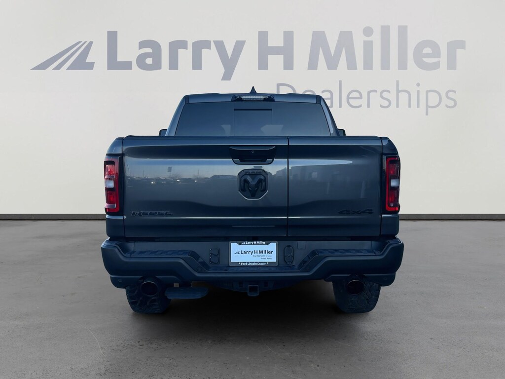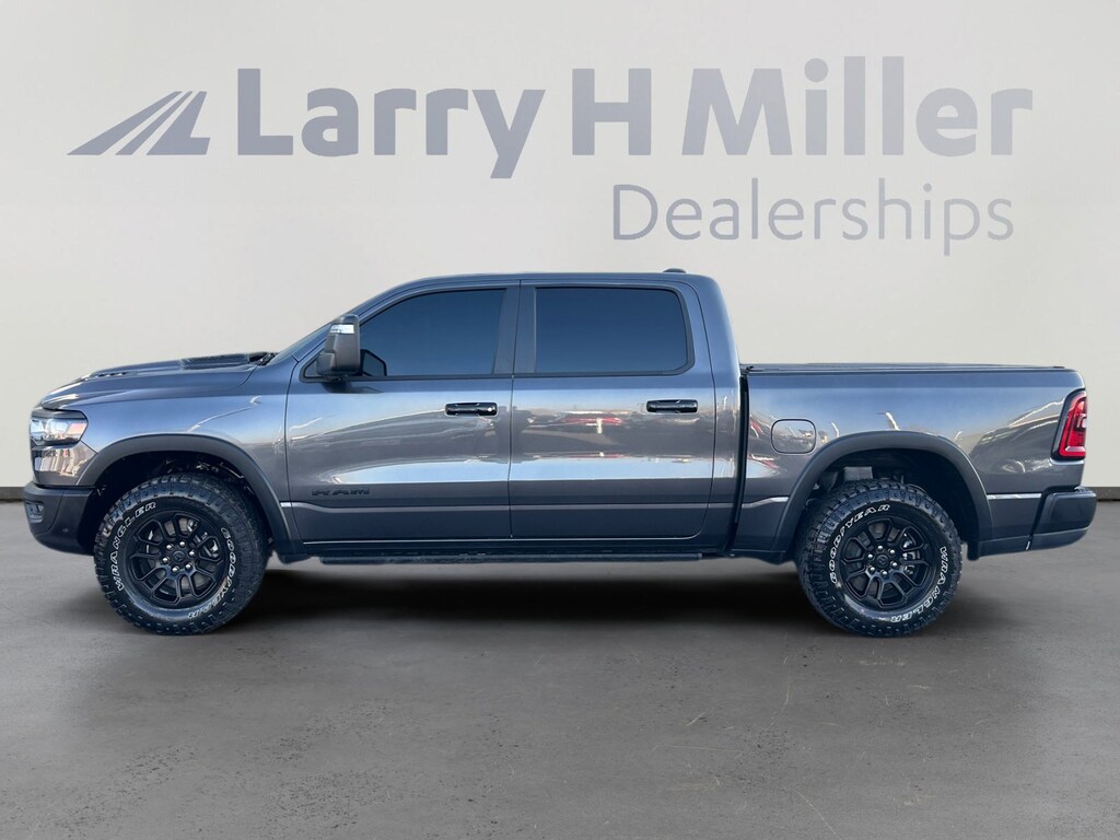 Advanced Safety Group II (12-Way/1-Way Trailer Connector, Active Driving Assist System, Drowsy Driver Detection, Evasive Steer Assist, Intersection Collision Assist System, Surround View Camera System, and Traffic Sign Recognition), Bed Utility Group (Exterior 115V AC Outlet, MOPAR 4 Adjustable Cargo Tie-Down Hooks, and MOPAR Spray In Bedliner), Quick Order Package 21W Rebel, Rebel Level 2 Equipment Group (115V Auxiliary Rear Power Outlet, 2-Door Passive Entry, Front Door Locks, 4G LTE Wi-Fi Hot Spot, Accent Color Door Handles, Accent Color Premium Power Mirrors, Accent Color Tailgate Handle, Apple CarPlay, Auto Power-Folding Mirrors, Auto-Dimming Exterior Driver Mirror, Black Painted Exterior Mirrors Caps, Connected Travel & Traffic Services, Connectivity - US/Canada, Convex Wide-Angle Exterior Mirror Insert, Driver Seat Memory, Dual Wireless Charging Pad, Exterior Mirrors Approach Lamps, Exterior Mirrors Courtesy Lamps, Exterior Mirrors w/Heating Element, Exterior Mirrors w/Memory, Exterior Mirrors w/Supplemental Signals, Front Passenger Interactive Display, Google Android Auto, GPS Antenna Input, GPS Navigation, harman/kardon 19 Speaker Premium Sound, HD Radio, Heated Second Row Seats, Integrated Voice Command w/Bluetooth, Media Hub w/2 Charge Only USBs, Off-Road Information Pages, Power Adjust 8-Way Front Passenger Seat, Power Adjustable Pedals w/Memory, Power Tailgate, Proximity Approach/Departure Lamps, Radio: Uconnect 5 Nav w/14.4 Display, Radio/Driver Seat/Mirrors/Pedals Memory, Rain Sensitive Windshield Wipers, Rear Window Defroster, Security Alarm, SiriusXM w/360L, Smartphone As A Key Capable, and USB Host Flip), Technology Group (Heads-Up Display and LED CHMSL Lamp), Towing Technology Group (Trailer Hitch Line-Up Assist), Trailer Tow Group (Auto-Dimming Exterior Passenger Mirror, Forward & Reverse Utility Lights, Manual Folding Exterior Mirrors, Manual Telescoping Mirrors, Mirror Clearance/Running Lights, Power Telescoping Mirrors, Power-Adjustable Convex Aux Mirrors, Trailer Brake Control, Trailer Light Check, Trailer Reverse Steering Control, Trailer Tire Pressure Monitoring System, and Trailer Tow Mirrors), 10 Speakers, 3.92 Rear Axle Ratio, 33 Gallon Fuel Tank, 4 Way Front Headrests, 4-Wheel Disc Brakes, ABS brakes, Air Conditioning, Alloy wheels, AM/FM radio: SiriusXM with 360L, Apple CarPlay/Android Auto, Auto High-beam Headlights, Auto-dimming Rear-View mirror, Automatic temperature control, Brake assist, Bucket Seats, Cloth/Vinyl Bucket Seats, Compass, Delay-off headlights, Dome Dual LED Reading Lamp, Driver door bin, Driver vanity mirror, Dual front impact airbags, Dual front side impact airbags, Dual-Pane Panoramic Sunroof, Electronic Stability Control, Front anti-roll bar, Front Bucket Seats, Front Center Armrest w/Storage, Front dual zone A/C, Front fog lights, Front License Plate Bracket, Front reading lights, Front Seat Back Map Pockets, Front wheel independent suspension, Full Length Upgraded Floor Console, Fully automatic headlights, Garage door transmitter, Heated door mirrors, Heated front seats, Heated steering wheel, Illuminated entry, Leather steering wheel, Low tire pressure warning, Manufacturer's Statement of Origin, Multi-Function Tailgate, Navigation System, Occupant sensing airbag, Outside temperature display, Overhead airbag, Overhead console, Panic alarm, ParkView Rear Back-Up Camera, Passenger door bin, Passenger vanity mirror, Power Adjust 8-Way Driver Seat, Power door mirrors, Power driver seat, Power steering, Power windows, Radio data system, Radio: Uconnect 5 Nav w/12.0 Display, RAM's Head Badge, Rear 60/40 Folding Seat, Rear anti-roll bar, Rear seat center armrest, Rear step bumper, Remote keyless entry, Speed control, Split folding rear seat, Steering wheel mounted audio controls, Tachometer, Telesc