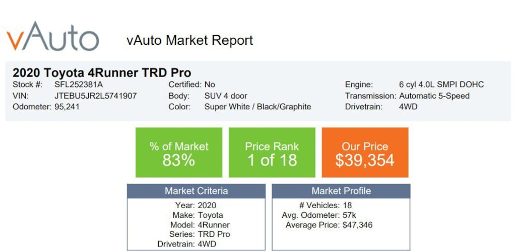 4WD, Black/Graphite Cloth, ABS brakes, Active Cruise Control, Alloy wheels, Compass, Electronic Stability Control, Heated door mirrors, Heated Front Bucket Seats, Heated front seats, Illuminated entry, Low tire pressure warning, Power moonroof, Power Tilt & Slide Moonroof w/Sunshade, Remote keyless entry, Traction control, 15 Speakers, 3.727 Axle Ratio, 4-Wheel Disc Brakes, Air Conditioning, AM/FM radio: SiriusXM, Anti-whiplash front head restraints, Apple CarPlay/Android Auto, Auto High-beam Headlights, Auto-dimming Rear-View mirror, Brake assist, Bumpers: body-color, Driver door bin, Driver vanity mirror, Dual front impact airbags, Dual front side impact airbags, Emergency communication system: Safety Connect with 1-year trial, Exterior Parking Camera Rear, Front anti-roll bar, Front Bucket Seats, Front Center Armrest, Front fog lights, Front reading lights, Front wheel independent suspension, Garage Door Opener, Garage door transmitter: HomeLink, Knee airbag, Leather Shift Knob, Occupant sensing airbag, Outside temperature display, Overhead airbag, Overhead console, Panic alarm, Passenger door bin, Passenger vanity mirror, Power door mirrors, Power driver seat, Power passenger seat, Power steering, Power windows, Radio: Premium JBL Audio w/Navigation, Rear anti-roll bar, Rear seat center armrest, Rear window defroster, Rear window wiper, Right & Left Individual Air Conditioner, Roof rack, Security system, Softex Synthetic Leather Seat Trim, Speed control, Speed-sensing steering, Split folding rear seat, Spoiler, Steering wheel mounted audio controls, Tachometer, Telescoping steering wheel, Tilt steering wheel, TRD Badging, TRD Pro Floor Mats, TRD Pro Shift Knob, TRD Suspension Kit, Trip computer, Turn signal indicator mirrors, Variably intermittent wipers, and Wheels: TRD 17 Matte Black Alloy. 4WD, Black/Graphite Cloth, ABS brakes, Active Cruise Control, Alloy wheels, Compass, Electronic Stability Control, Heated door mirrors, Heated Front Bucket Seats, Heated front seats, Illuminated entry, Low tire pressure warning, Power moonroof, Power Tilt & Slide Moonroof w/Sunshade, Remote keyless entry, Traction control.